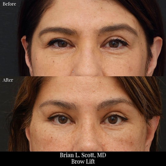 A good candidate for a brow lift has heavy or low eyebrows. Patients should be overall healthy without serious heart or lung diseases. Both men and women can benefit from a brow lift. Some patients with droopy eyelid skin need an eyelid lift in addition to a brow lift. Dr. Scott will assess you to determine if a brow lift alone or in combination with another procedure will give you the best results.